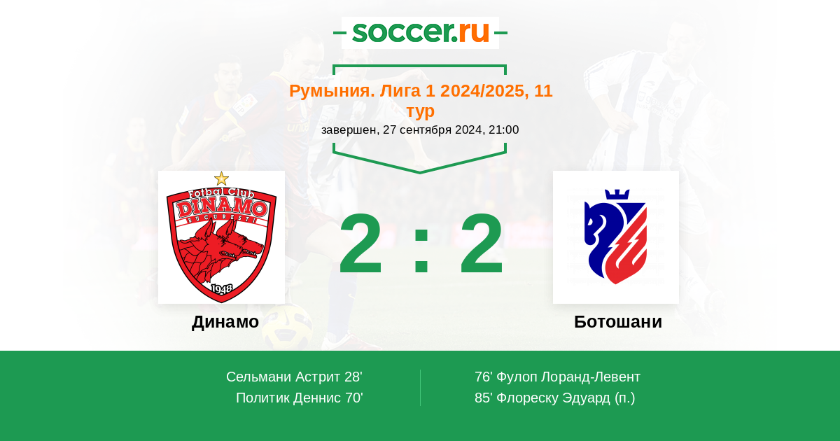 Протокол матча Динамо против Ботошани