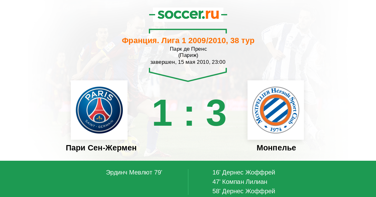 Протокол матча Пари Сен-Жермен против Монпелье