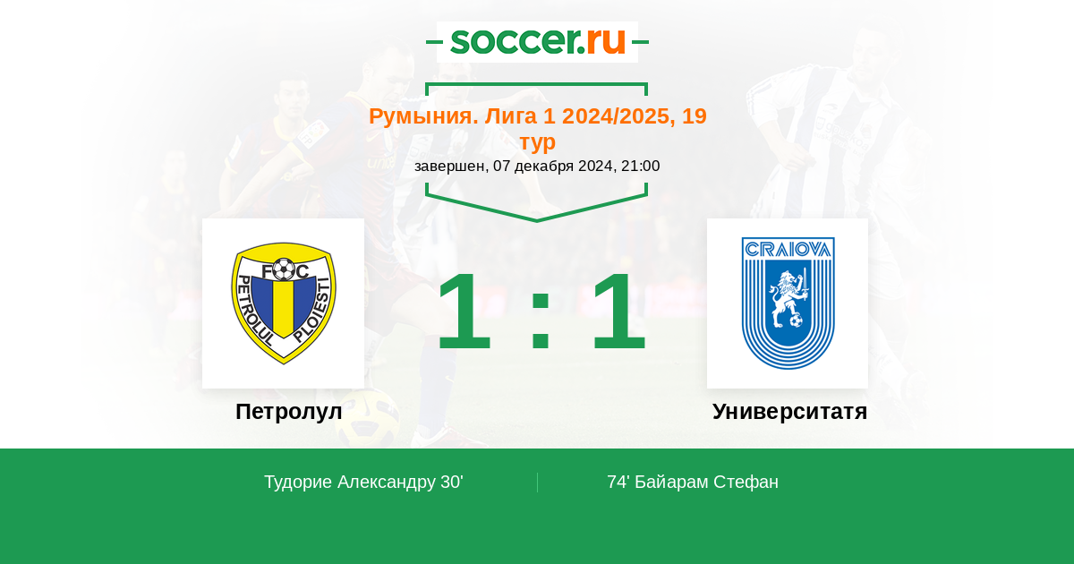 30' (1:0) Тудорие Александру (19) (Думитриу Лусиан (44))