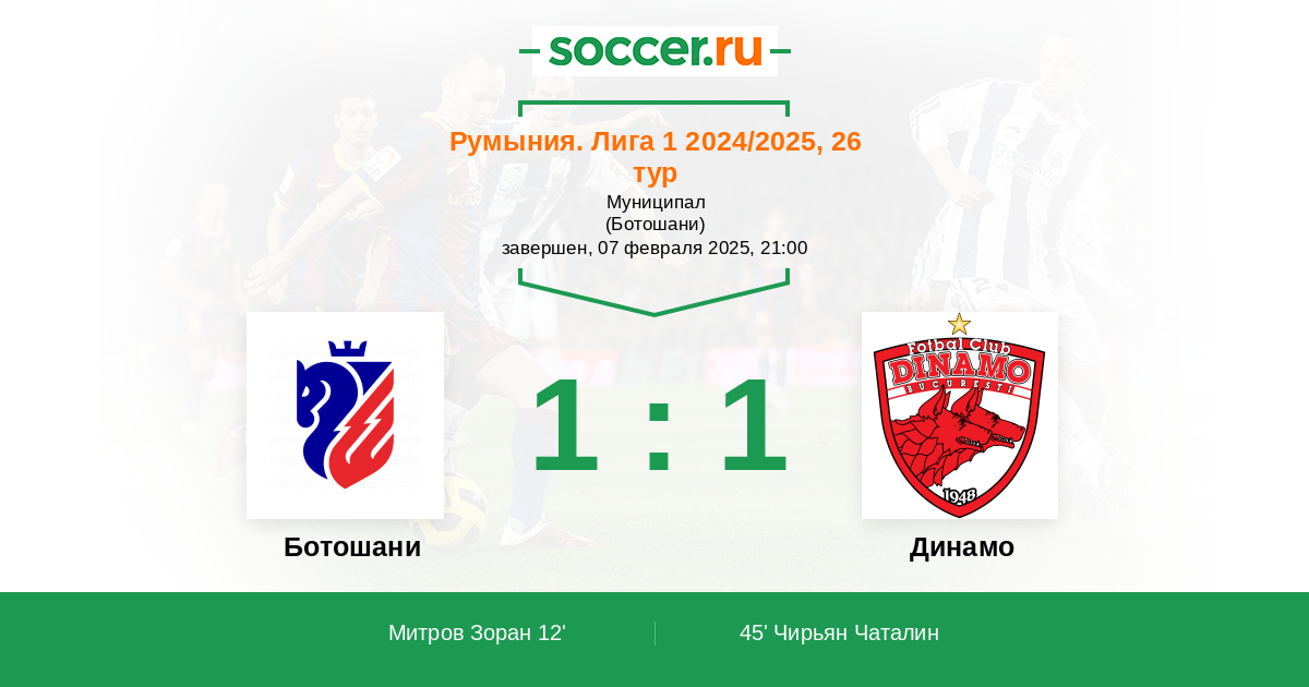 Протокол матча Ботошани против Динамо