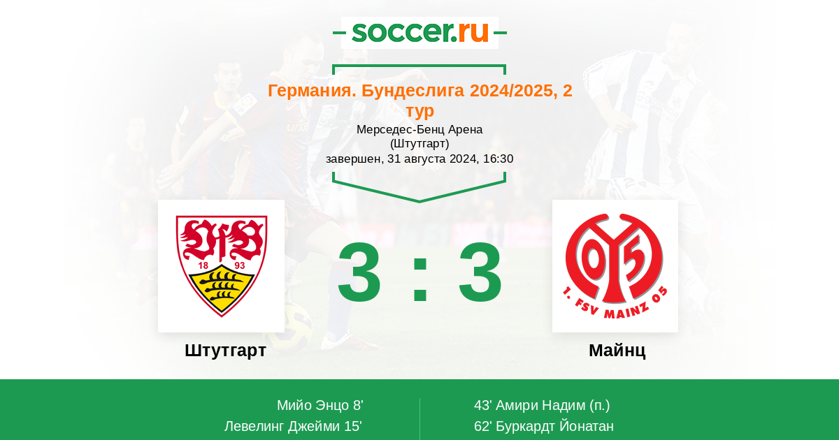 После удачного прошлого сезона Штутгарт на родном стадионе выглядит явным фаворитом сегодняшней игры с середнячком Майнцем. Тем более, что стартовый матч нынешнего чемпионата они проиграли и теперь должны реабилитироваться и набирать дома очки