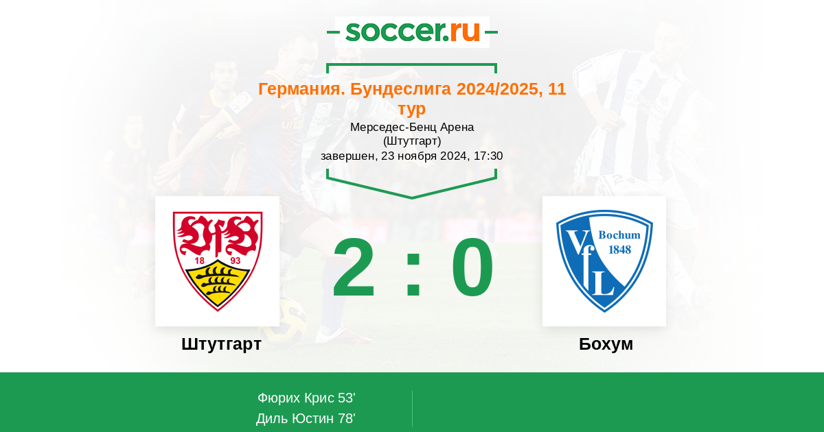 Протокол матча Штутгарт против Бохум