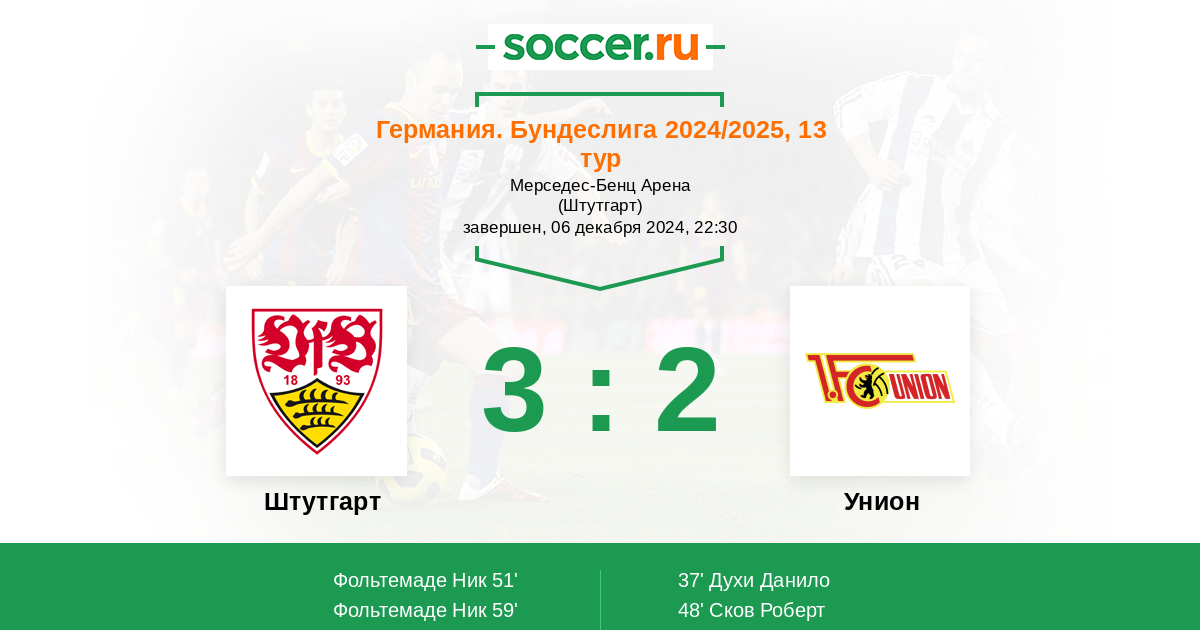 Протокол матча Штутгарт против Унион