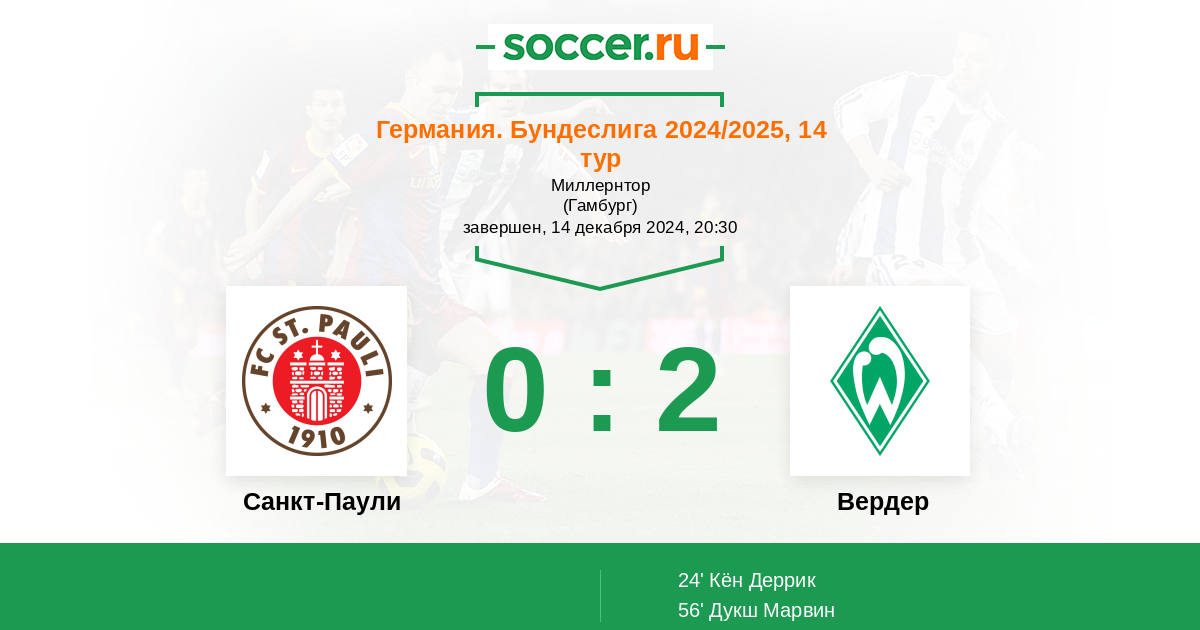 24' (0:1) Кён Деррик (19) (Стаге Йенс (6))