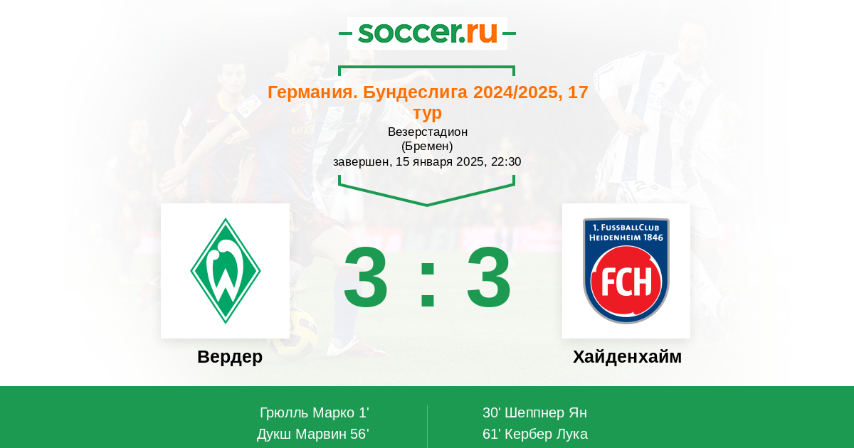 Протокол матча Вердер против Хайденхайм