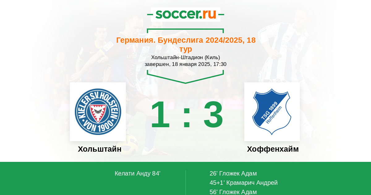 Протокол матча Хольштайн против Хоффенхайм