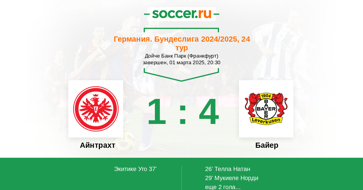 Протокол матча Айнтрахт против Байер