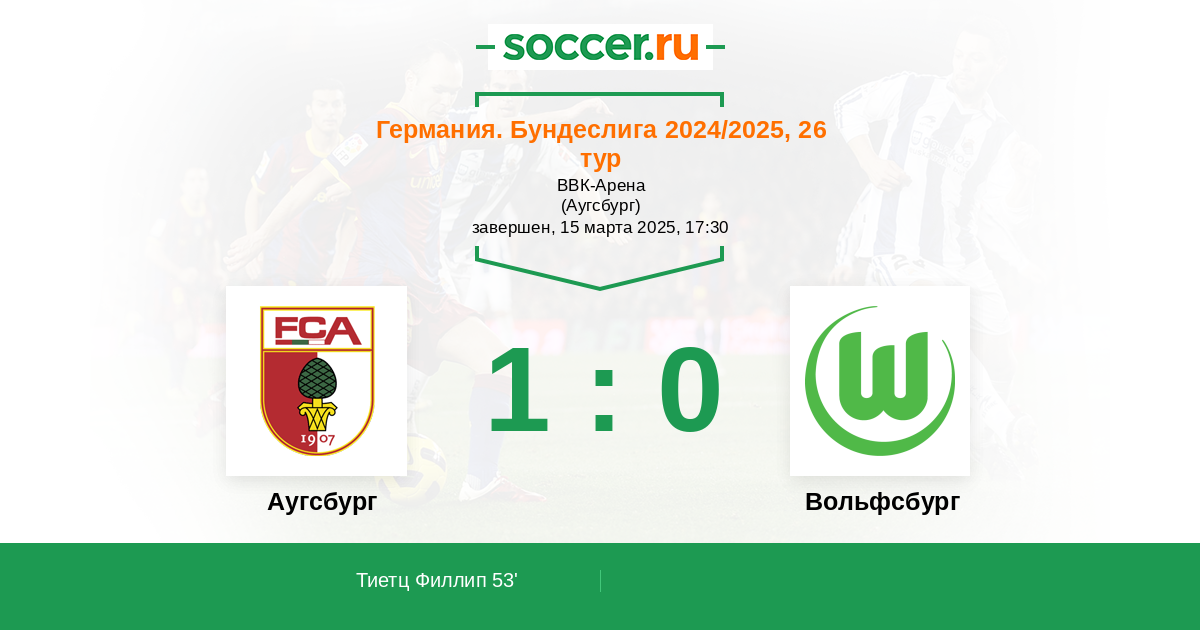 Протокол матча Аугсбург против Вольфсбург