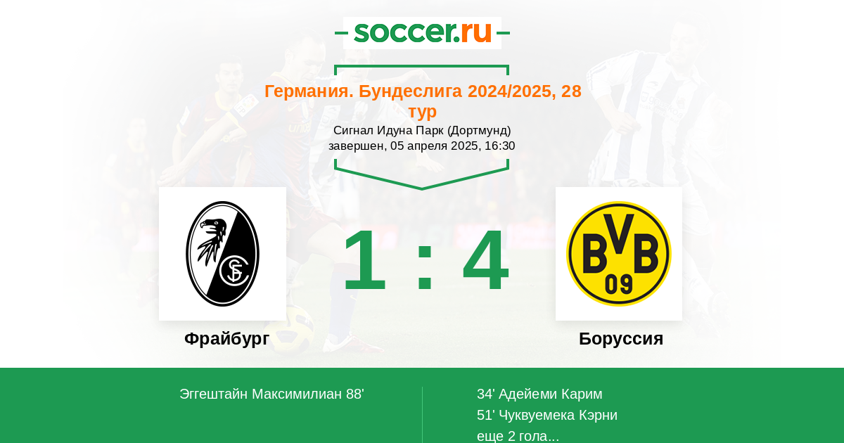 Фрайбург - Боруссия ! Игра между сильными командами , из середины тур . таблицы , всё ещё претендующих , при удачном стечение обстоятельств на место в ЕК зоне . ТБ .