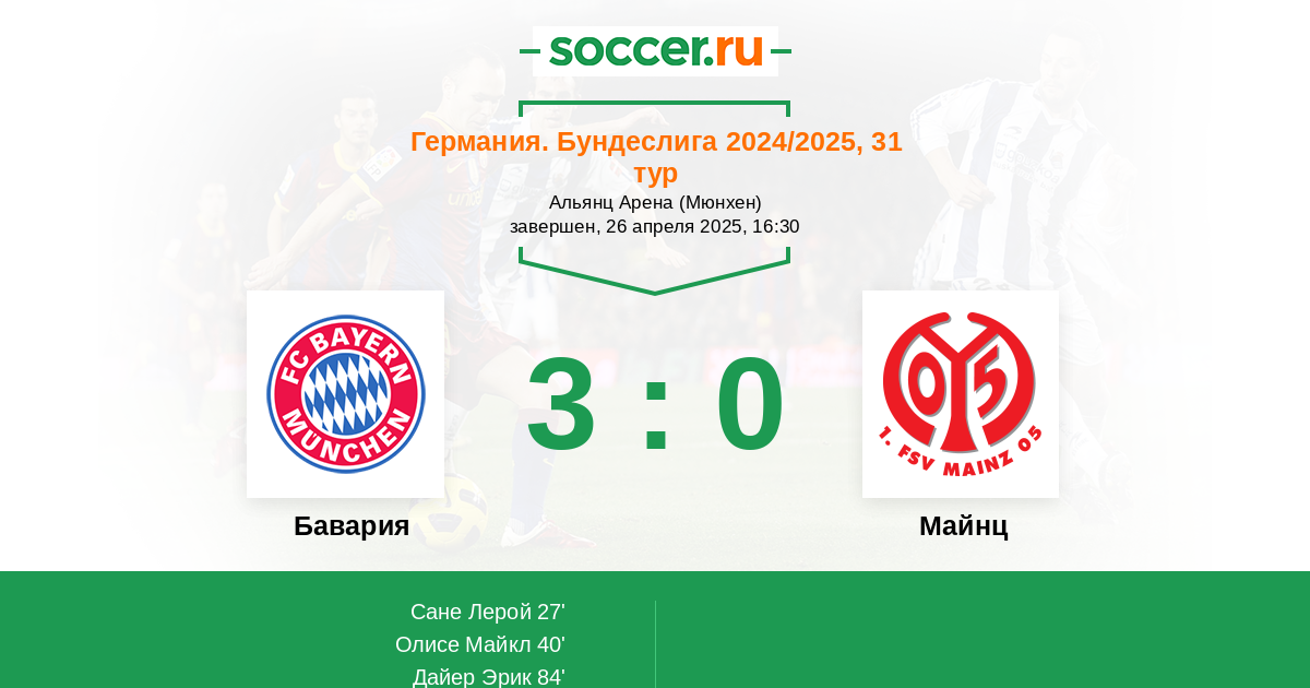 В случае потери очков Байера, болельщики Баварии уже завтра могут праздновать очередной титул своей любимой команды в Бундеслиге и вряд ли Майнц может стать серьёзным препятствием для завоевания "Серебряной салатницы"