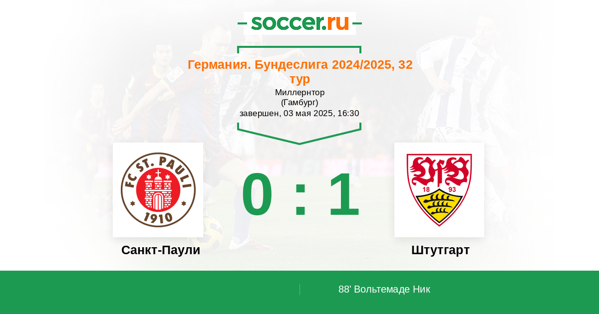 Протокол матча Санкт-Паули против Штутгарт