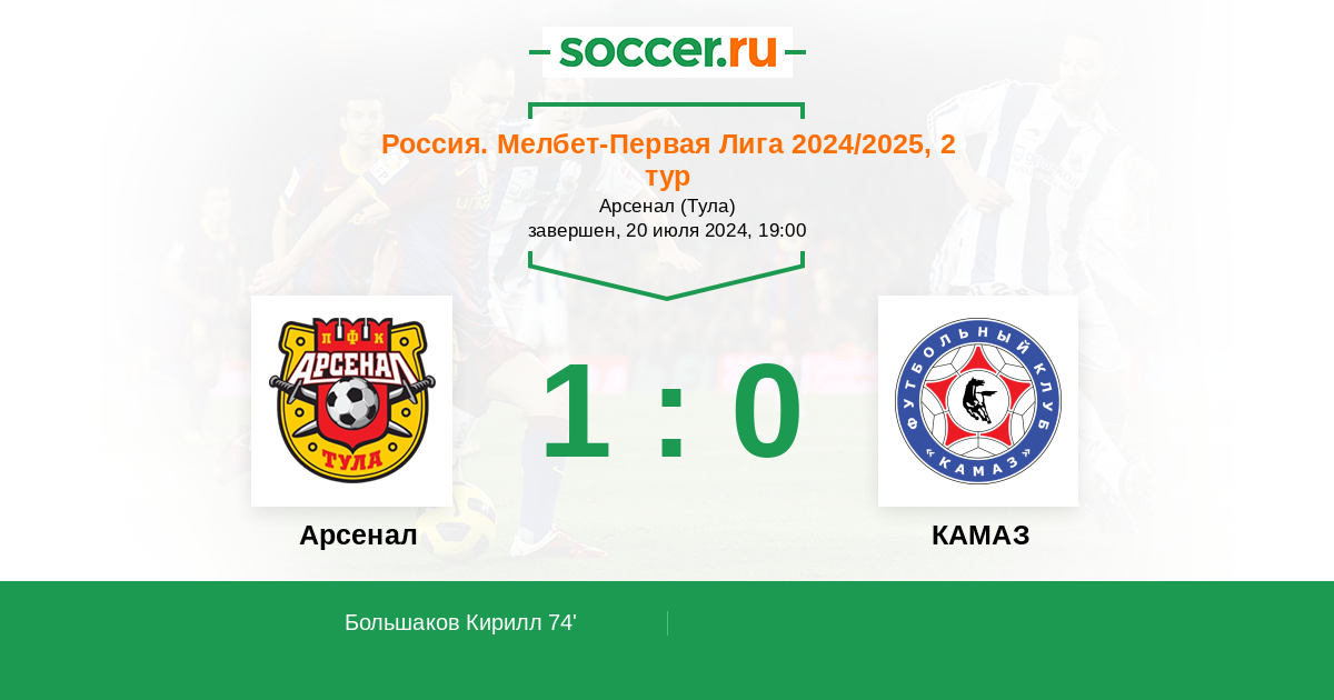 Протокол матча Арсенал против КАМАЗ