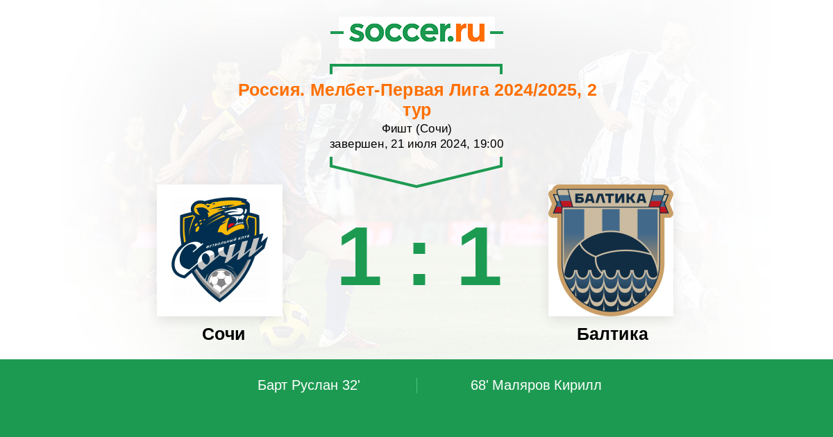 Протокол матча Сочи против Балтика