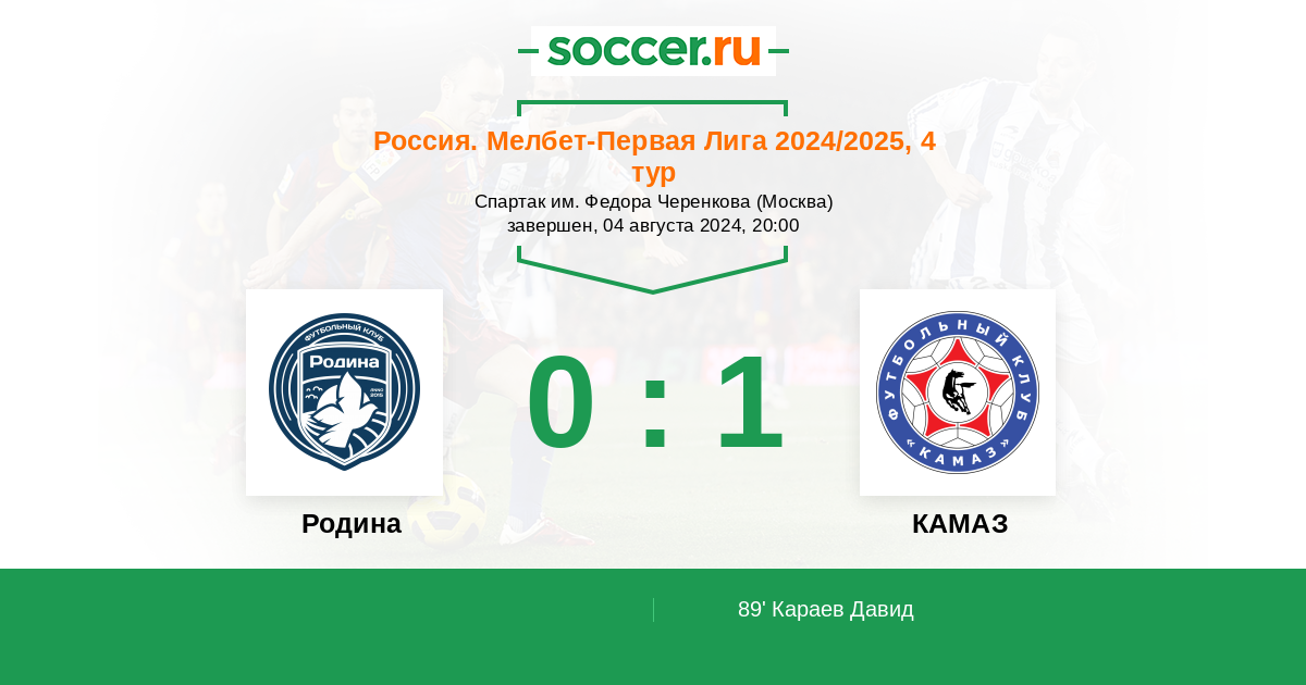 Протокол матча Родина против КАМАЗ