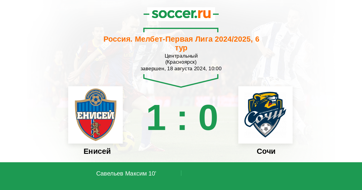 Протокол матча Енисей против Сочи