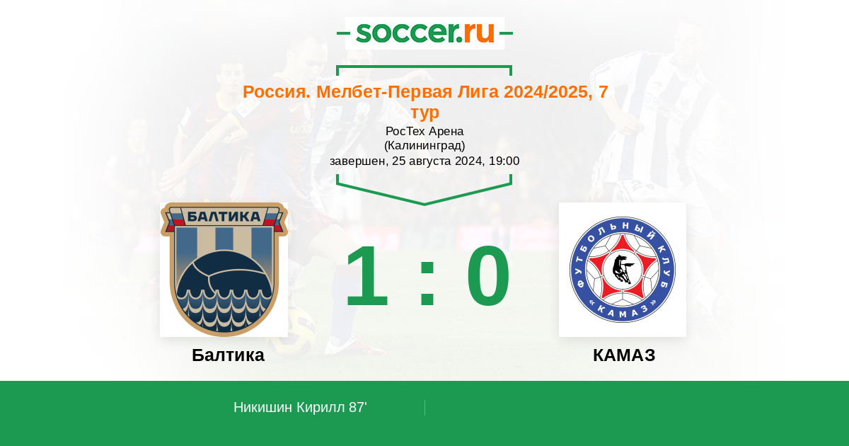 Протокол матча Балтика против КАМАЗ