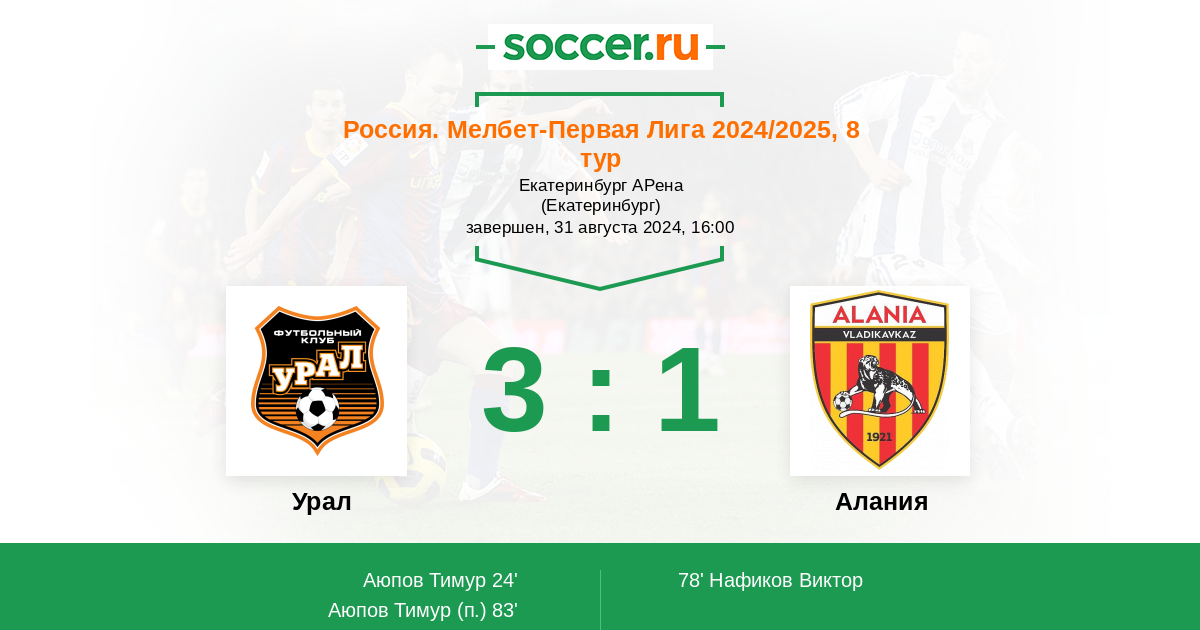 Протокол матча Урал против Алания