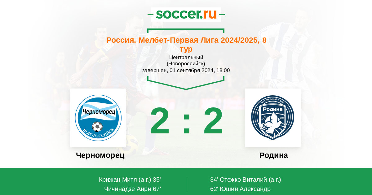 Протокол матча Черноморец против Родина