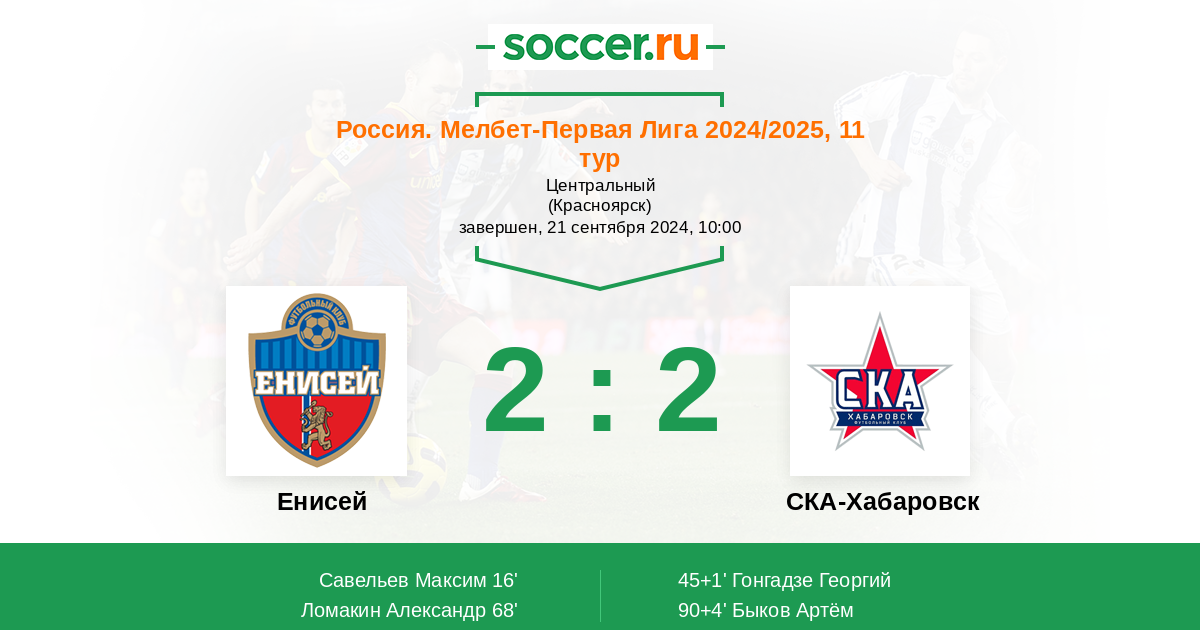 Протокол матча Енисей против СКА-Хабаровск