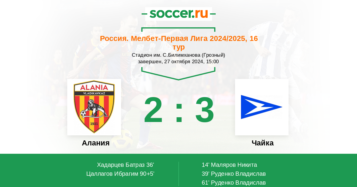 Пара Алания - Чайка, обе команды выступают крайне нестабильно, у одних преимущество в атаке, а у других более надёжная оборона, но рискну в пользу хозяев за счёт преимущества своего поля.