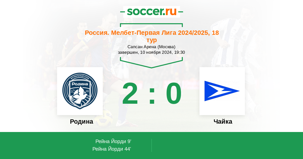 Протокол матча Родина против Чайка