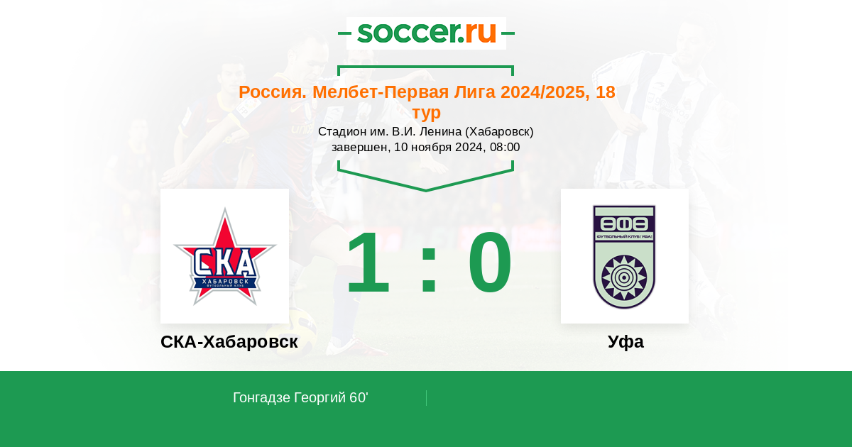 Протокол матча СКА-Хабаровск против Уфа