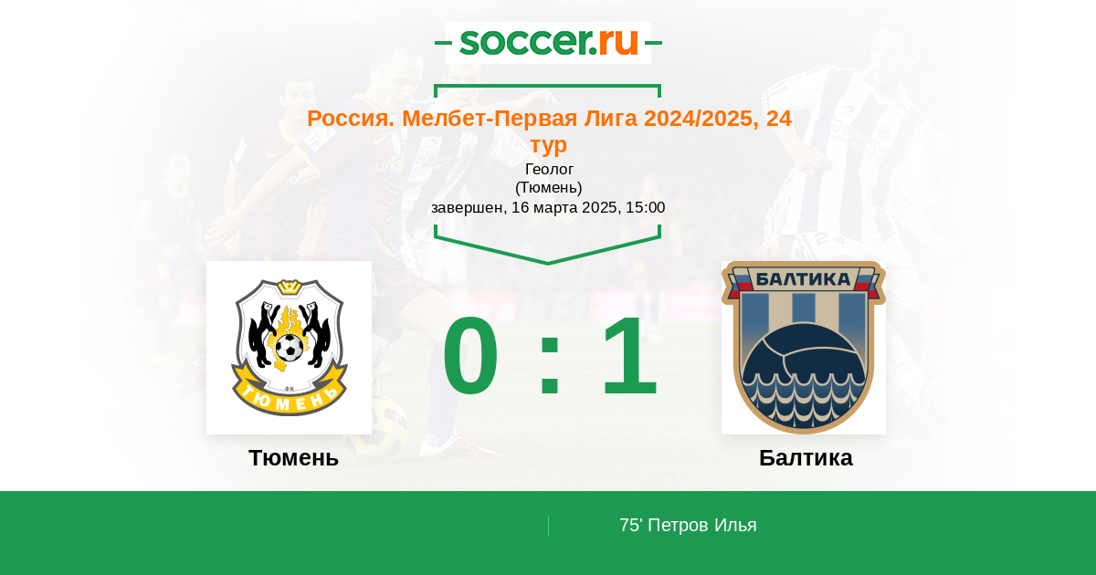 Протокол матча Тюмень против Балтика