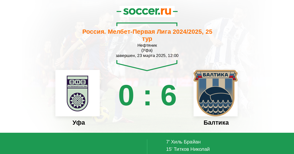 Протокол матча Уфа против Балтика