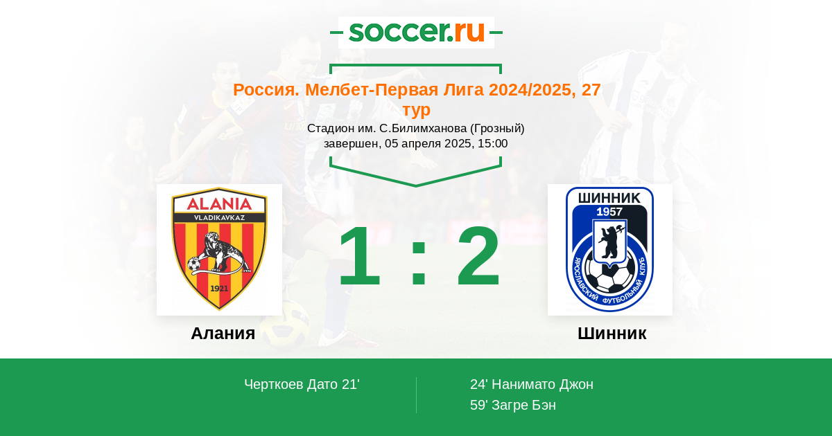 Протокол матча Алания против Шинник