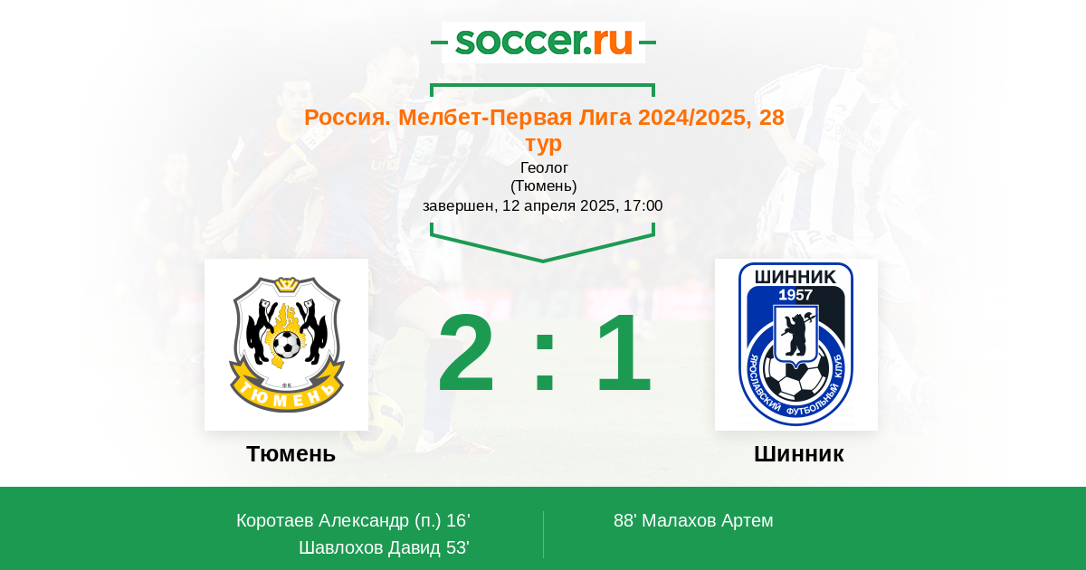Протокол матча Тюмень против Шинник