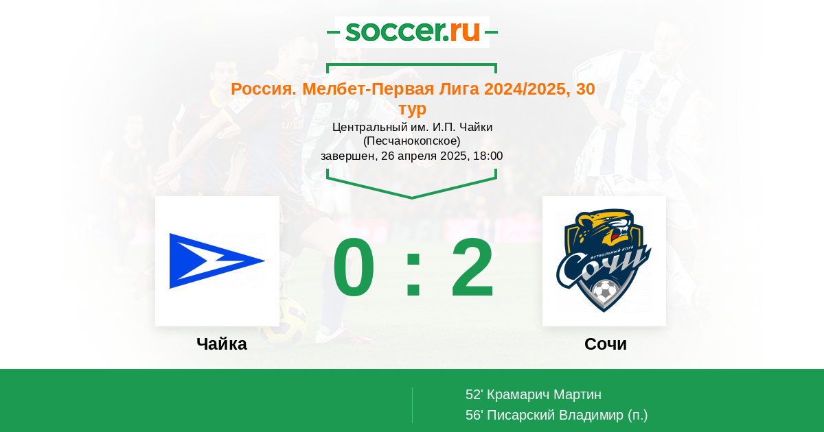 Протокол матча Чайка против Сочи