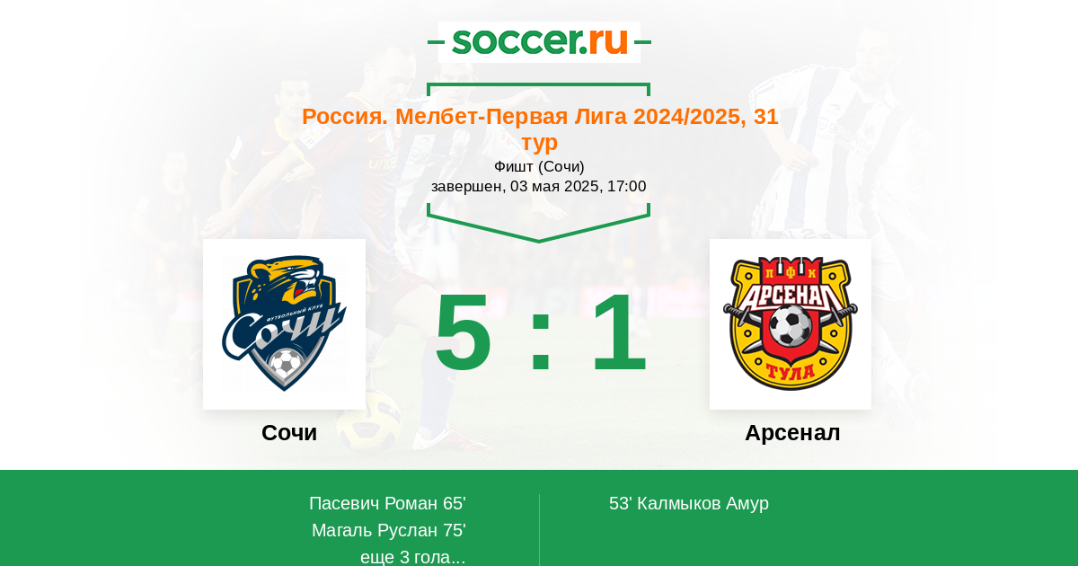 Протокол матча Сочи против Арсенал