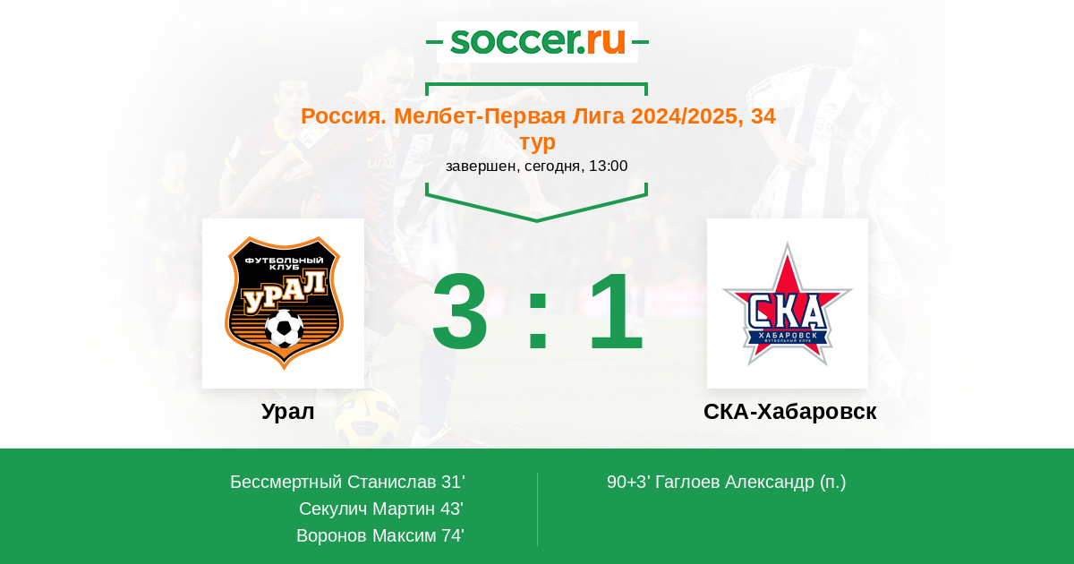 Протокол матча Урал против СКА-Хабаровск