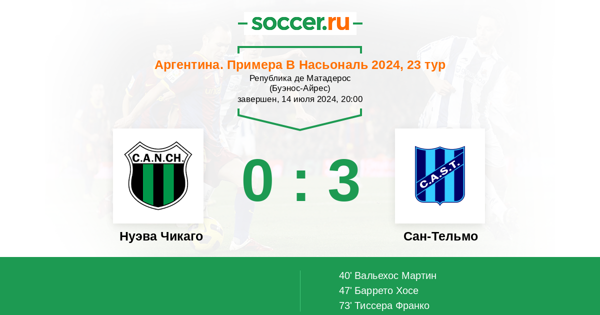 Протокол матча Нуэва Чикаго против Сан-Тельмо