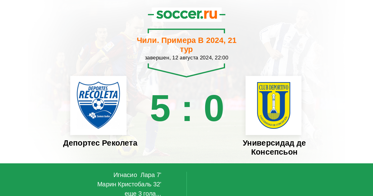 Протокол матча Депортес Реколета против Универсидад де Консепсьон