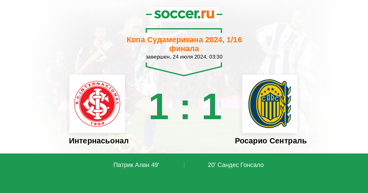 Протокол матча Интернасьонал против Росарио Сентраль