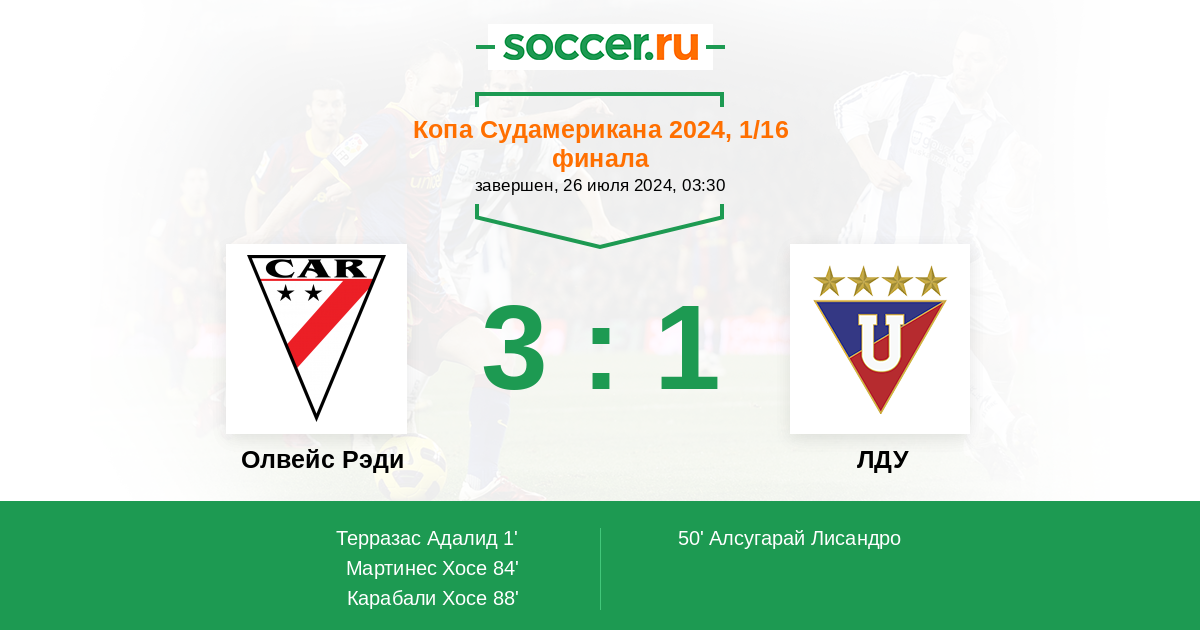 50' (1:1) Алсугарай Лисандро (9) (Хулио Джохан (26))