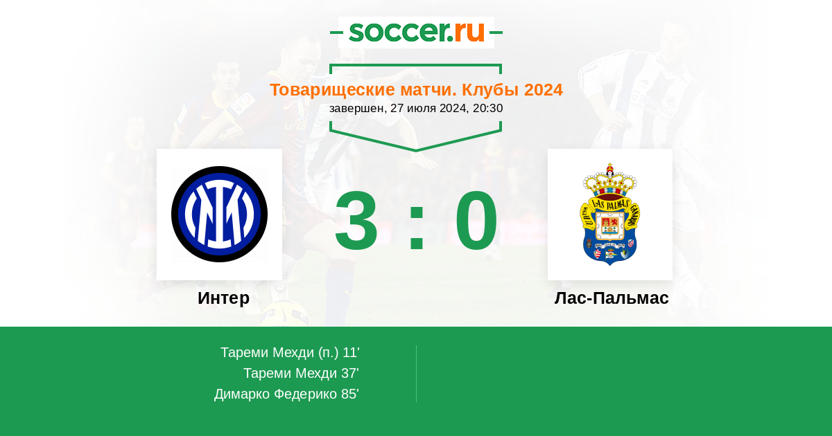 Протокол матча Интер против Лас-Пальмас