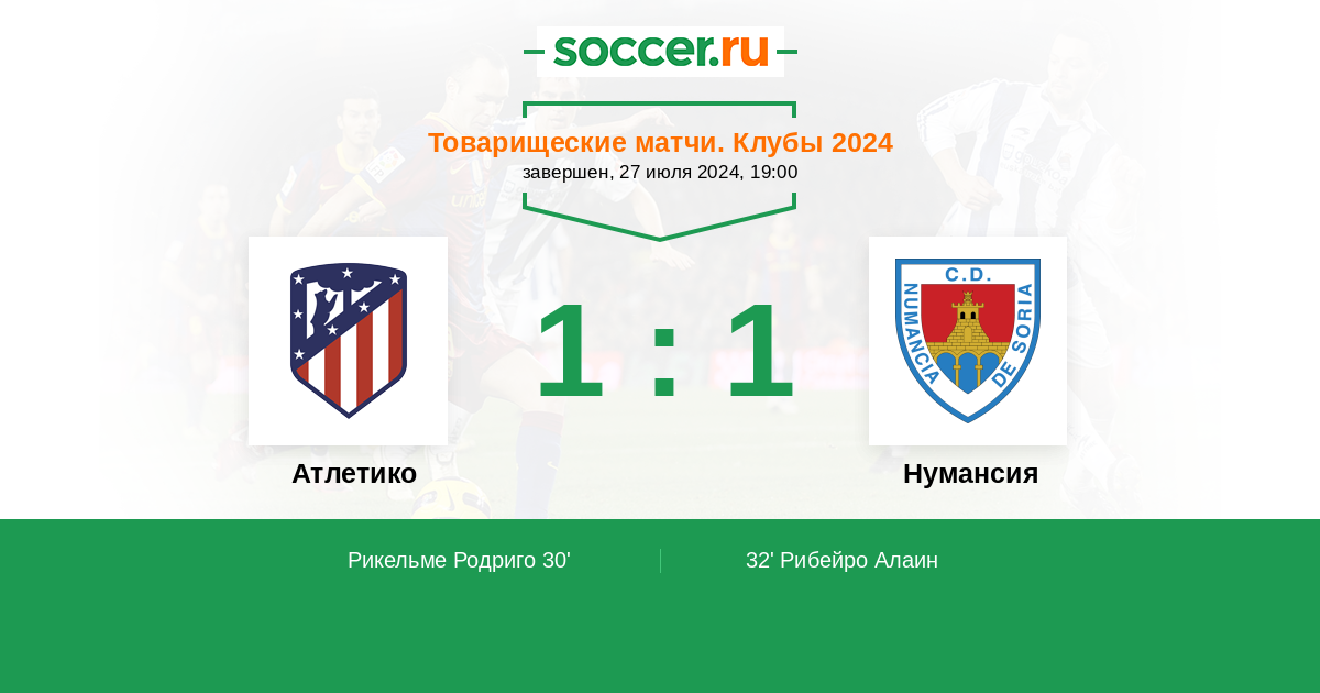 Протокол матча Атлетико против Нумансия