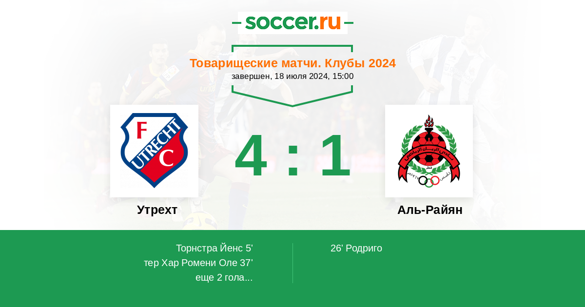 Протокол матча Утрехт против Аль-Райян