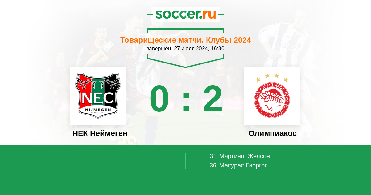Протокол матча НЕК Неймеген против Олимпиакос