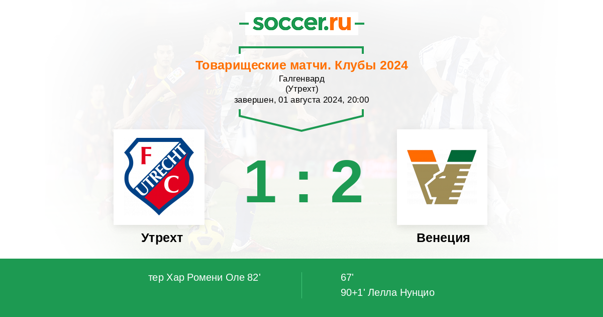 Протокол матча Утрехт против Венеция
