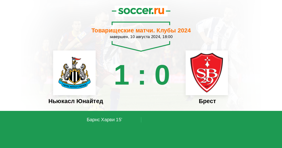 Протокол матча Ньюкасл Юнайтед против Брест