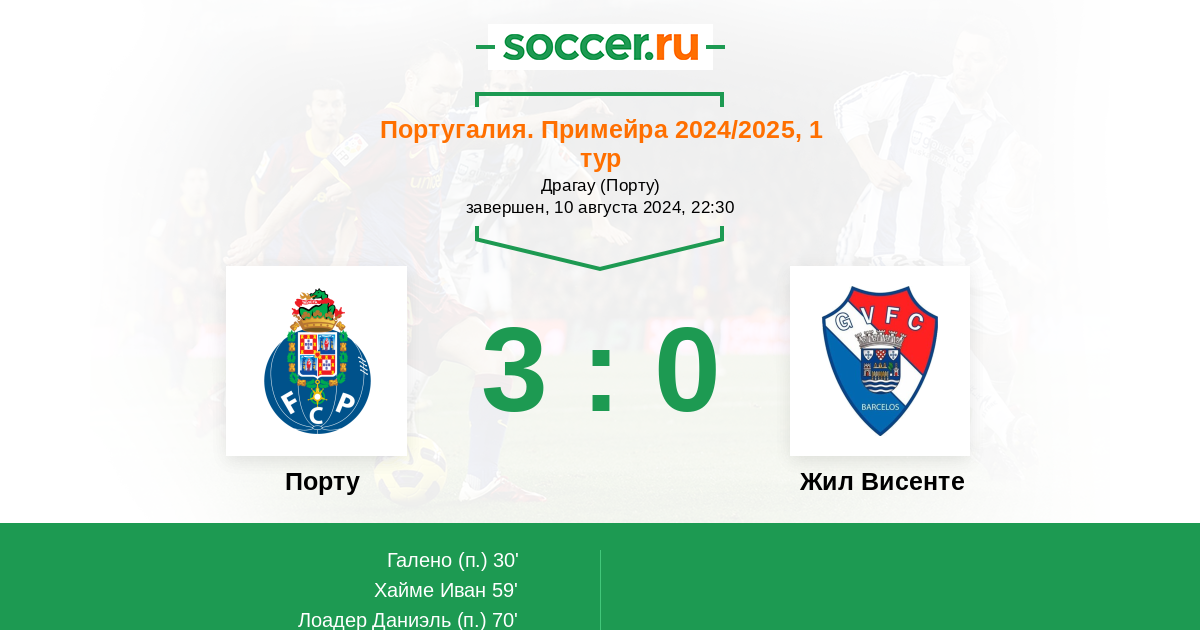 Протокол матча Порту против Жил Висенте