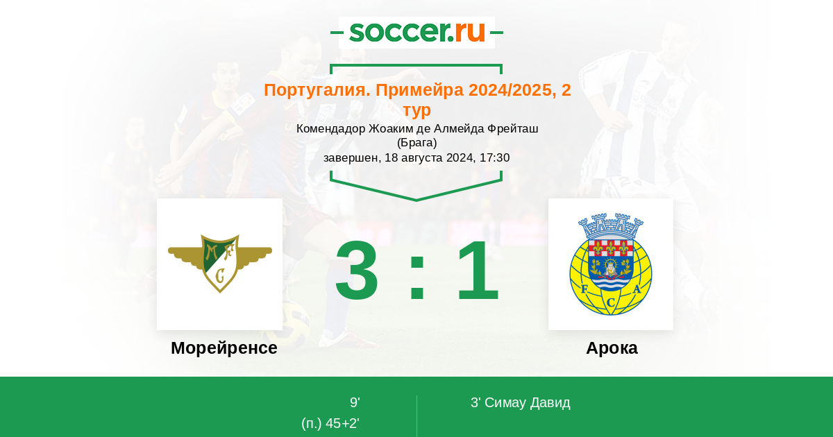 Протокол матча Морейренcе против Арока