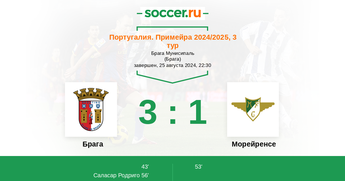 Протокол матча Брага против Морейренcе
