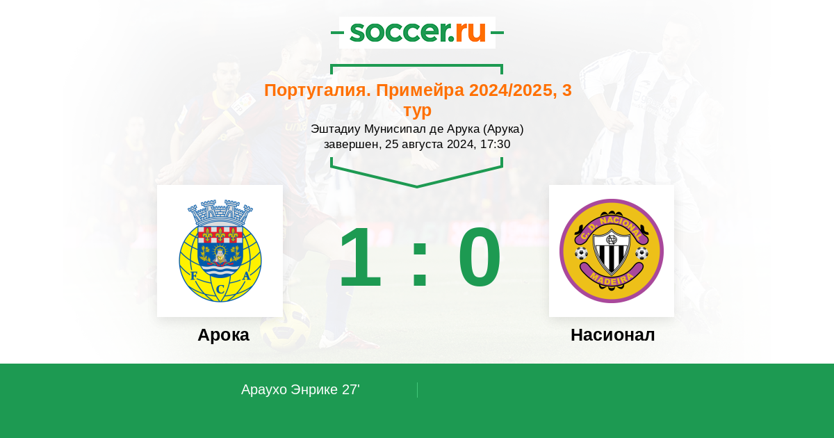 Протокол матча Арока против Насионал