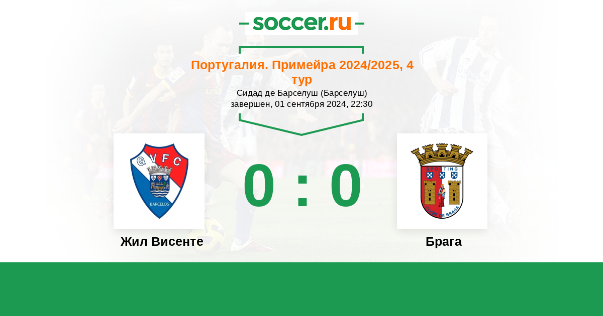 Протокол матча Жил Висенте против Брага