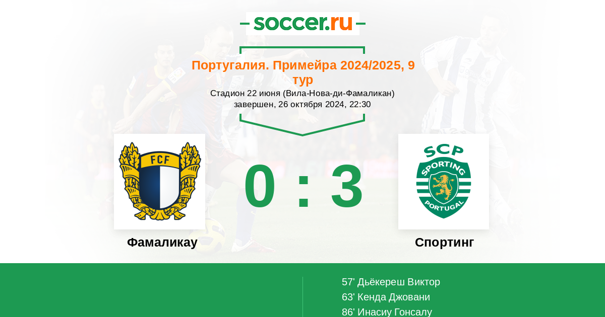 Протокол матча Фамаликау против Спортинг