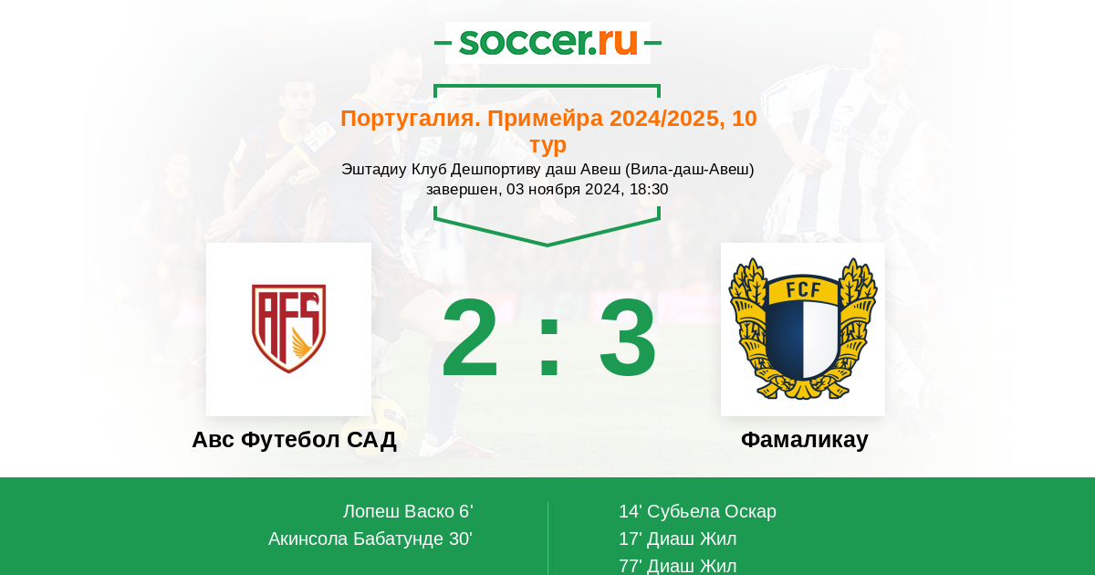 Протокол матча Авс Футебол САД против Фамаликау